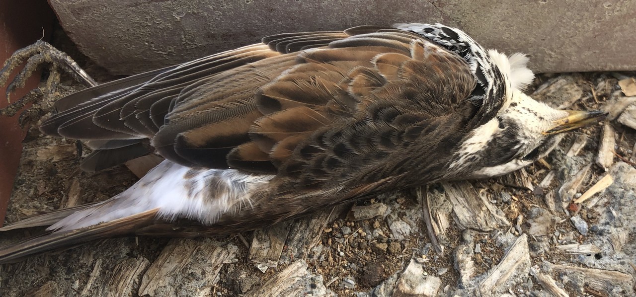 バードストライクの被害にあったツグミ