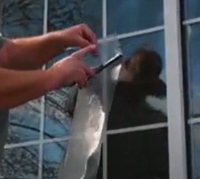 ●雨や結露でガラスの表面が濡れていないことを確認してください。特に湿度が高い日に室内が冷房されているとガラス外側表面が結露し、正しく貼れません。