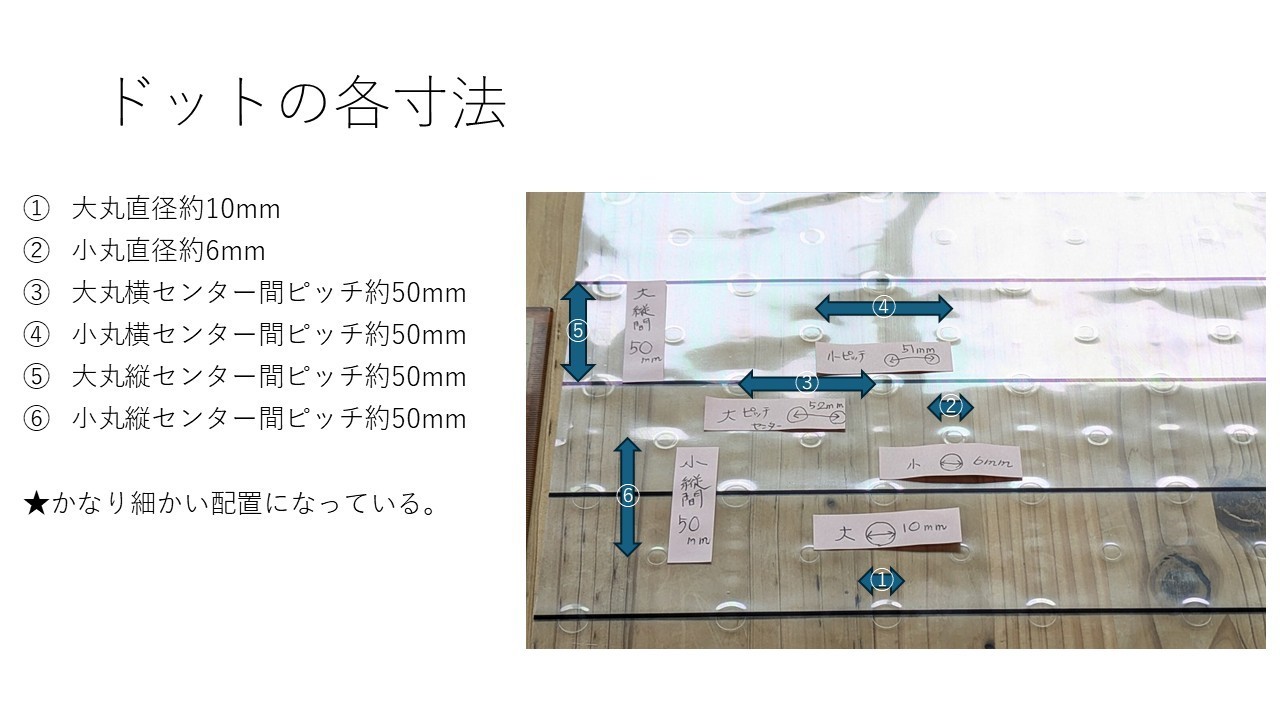 ⇒⇒このあと上面の透明シートを剥がすと、ドットだけが残り、完成です。
