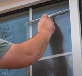 ・外窓側をクリーナーで清掃、油膜、汚れなどを取り除きます